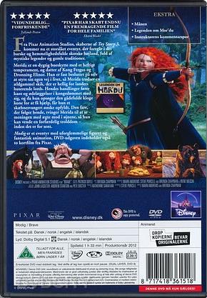 | Beskrivelse: [ Dansk Engelsk ] I det skotske højland længes den rebelske prinsesse Merida efter at bryde med sin klans traditionelle mønstre. Udsigten til arrangeret ægteskab bliver dråben, der får Merida til at stikke af fra slottet. Da hun møder en heks i skoven, udtrykker hun et letsindigt ønske om at lave om på sin mor, dronning Elinor. Resultatet af heksens trolddom bringer såvel kongefamilien som hele riget i fare. Beskrivelse: [ Dansk Engelsk ] Animated fairy tale from Pixar Studios. Headstrong tomboy and skilled archer Princess Merida (voice of Kelly MacDonald) is determined to break with tradition and carve out her own path in life. In defiance of her parents, King Fergus (Billy Connolly) and Queen Elinor (Emma Thompson), Merida flies in the face of an age-old custom held sacred by the three principal lords of the land, Lord MacGuffin (Kevin McKidd), Lord MacIntosh (Craig Ferguson) and Lord Dingwall (Robbie Coltrane). Her actions lead to chaos in the kingdom, and it is now up to Merida not only to restore harmony in the land but to undo an ill-fated wish bestowed upon her by a wayward wise woman (Julie Walters). |