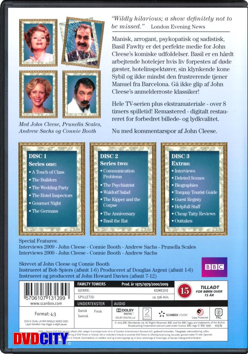 | Beskrivelse: [ Dansk Engelsk ] Manisk, arrogant, psykopatisk og sadistisk, Basil Fawlty er det perfekte medie for John Cleese komiske brillians. Basil er en hårdt arbejtende hotelejer hvis liv forpestet af døde gæster, hotellinspektører, sin klynkende fru Sybil og ikke mindst den frustrerende tjener Manuel fra Barcelona.