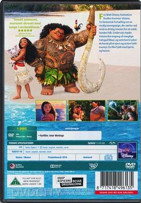 | Beskrivelse: [ Dansk Engelsk ] Fra Walt Disney Animation Studios kommer Vaiana. En fantastisk fortælling om en modig teenagepige, der sætter sejl mod en dristig mission for at redde hendes folk. Undervejs møder Vaiana den engang så mægtige halvgud Maui, og sammen krydser de havet på et sjovt og action fyldt eventyr. En film fyldt med hjerte og humor. Beskrivelse: [ Dansk Engelsk ] Disney animated adventure set in ancient Oceania. When a fiery ocean demon threatens her peaceful island home, teenage Princess Moana (voice of Auli'i Cravalho) vows to fulfil her heroic destiny and save her people. Putting her navigation skills to the test, Moana sets out on a daring sea voyage to find the once-mighty demi-God Maui (Dwayne Johnson), the legendary creator of the Pacific Islands and the only one who can help her with her quest. Together, they traverse the treacherous open waters, encountering difficult conditions and dangerous creatures along the way, as Moana searches for the mythical island which holds the key to completing her mission. The film also features the voice talents of Jemaine Clement, Alan Tudyk and Nicole Scherzinger. The film was nominated for the BAFTA for Best Animated Film, two Golden Globe Awards for Best Animated Feature Film and Best Original Song - Motion Picture (How Far I'll Go), and two Academy Awards for Best Animated Feature and Best Original Song (How Far I'll Go). |