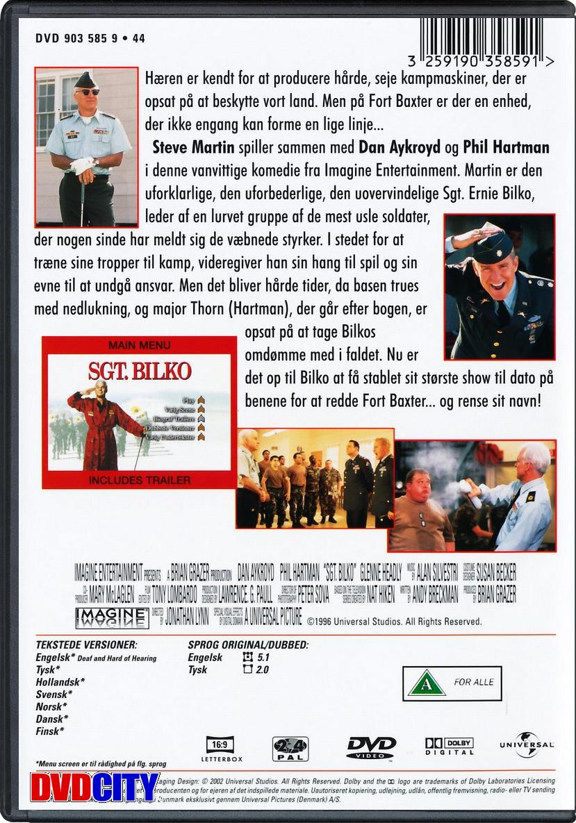 | Beskrivelse: [ Dansk Engelsk ] Den amerikanske hær er kendt for at sprøjte seje og veltrænede kampmaskiner ud, som har til formål at forsvare nationen. Men på Fort Baxter er der en afdeling, der ikke engang er i stand til at stå på én lige række. Den uforbederlige og uovervindelige Sgt. Ernie Bilko, er leder for en ynkelig gruppe af de sørgeligste soldater, der nogensinde er set i hæren. I stedet for at træne sine tropper til kamp, viderefører han sin spilletrang og totale mangel på ansvarsfølelse. Men Bilko´s søde liv forstyrres, da basen trues af lukning og major Thorn har tænkt sig at lade Bilko´s omdømme gå samme vej som basen. Nu er det op til Bilko at få mandet sig op til sin hidtil største aktion for at redde Fort Baxter - og redde sit navn!. Beskrivelse: [ Dansk Engelsk ] The Army is known for churning out lean, mean fighting machines intent on protecting our great nation. But at Fort Baxter, there's one unit that can't even form a straight line...