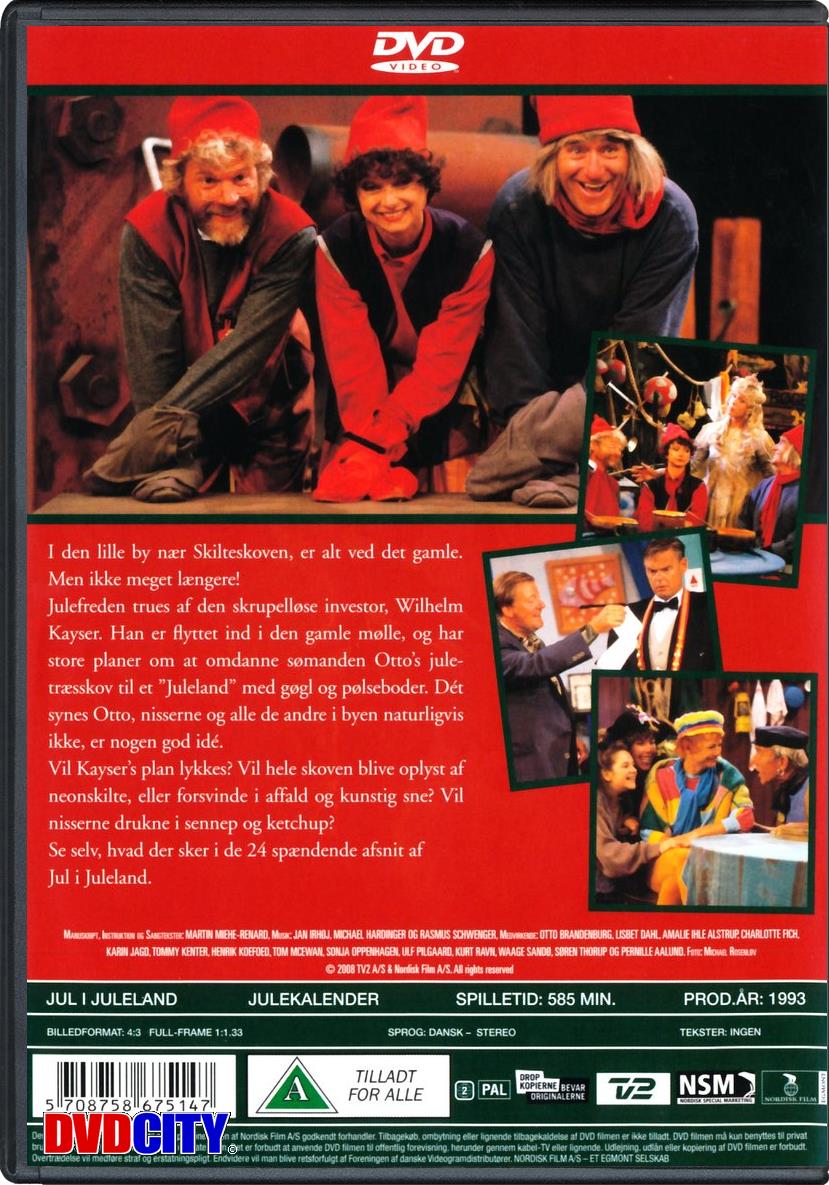 I den lille by nær Skilteskoven, er alt ved det gamle. Men ikke meget længere! Julefreden trues af den skrupelløse investor, Wilhelm Kayser. Han er fl yttet ind i den gamle mølle, og har store planer om at omdanne sømanden Otto's juletræsskov til et "Juleland" med gøgl og pølseboder. Dét synes Otto, nisserne og alle de andre i byen naturligvis ikke, er nogen god idé. Vil Kayser's plan lykkes? Vil hele skoven blive oplyst af neonskilte, eller forsvinde i affald og kunstig sne? Vil nisserne drukne i sennep og ketchup? Se selv, hvad der sker i de 24 spændende afsnit af Jul i Juleland.